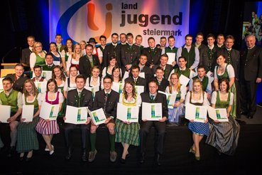 Am 24.Jänner war es wieder soweit – der Höhepunkt des Landjugendjahres stand am Programm. Der Bezirk Liezen machte sich mit rund 100 Landjugendlichen aus 10 Ortsgruppen auf den langen Weg nach Hartberg. Dieses Jahr galt es pünktlich zu sein, denn der Festakt am Vormittag durfte nicht verpasst werden. Hierbei gab es für den Bezirk Liezen so einiges zu feiern. Thomas Spannring (OG Lassing) bekleidet seit Oktober 2015 das Amt des Landesobmann Stv. und führte gemeinsam mit seinen Landesvorstandskollegen durch das Programm. Im Rahmen des Festaktes wurden nicht nur unsere Bundessieger von der Landwirtschaftskammer Steiermark geehrt, nein, auch die goldenen Leistungsabzeichen für besonders aktive und engagierte Landjugendmitglieder wurden vergeben. Dieses Jahr erhielten auch zwei aus unserem Bezirk dieses Auszeichnung: Bernadette Titschenbacher und Christoph Neuper (beide OG Irdning). Einen weiteren Höhepunkt stellte die Vergabe des goldenen Panthers dar. 25 Projekte wurden steiermarkweit eingereicht. Für den Bezirk Liezen gingen die OG Irdning (Rumänien-Unterstützung) sowie die OG Paltental (Naschgarten für die Lebenshilfe) ins Rennen. Das Projekt der Paltentaler wurde mit dem bronzenen, das Rumänien-Projekt der Irdninger sogar mit dem silbernen Panther ausgezeichnet. Wir gratulieren an dieser Stelle nochmals zu den herausragenden ehrenamtlichen Leistungen! Nach der Spannung während dem Festakt stand dem ausgelassenen Feiern und Tanzen nichts mehr im Wege. Nach der Eröffnungspolonaise und dem offenen Volkstanzen sorgten ‚Die Grafen‘ für tolle Stimmung. Zahlreiche Landjugendliche aus unserem Bezirk wurden nicht nur an den Bars oder in der Disko sondern auch auf der Tanzfläche gesichtet. J